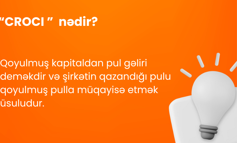 Bu, qoyulmuş kapitaldan pul gəliri deməkdir və şirkətin qazandığı pulu qoyulmuş pulla müqayisə etmək üsuludur. CROCI faizlər, vergilər, amortizasiya və amortizasiyadan əvvəlki mənfəətin (EBITDA) qoyulmuş ümumi kapitala bölünməsi ilə hesablanır.