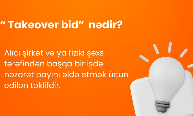 Alıcı şirkət və ya fiziki şəxs tərəfindən başqa bir işdə nəzarət payını əldə etmək üçün edilən təklif. Təkliflər ümumiyyətlə şirkətin idarə heyətinə və səhmdarlarına yönəldilir və adətən düşmən və ya dost kimi təsnif edilə bilər.